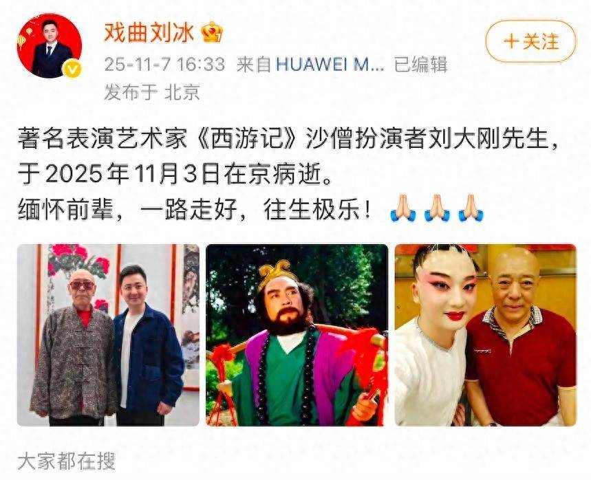 十一月三日,他走了,直到七日,戏曲演员刘冰在社交平台透露,我们才惊觉,那位忠厚老实的“沙和尚”已离我们而去,他叫刘大刚,国家一级演员,享年78岁,对于他的离世,家属选择了低调,没有公布具体病因,仅以“因病去世”四字告慰世人。
